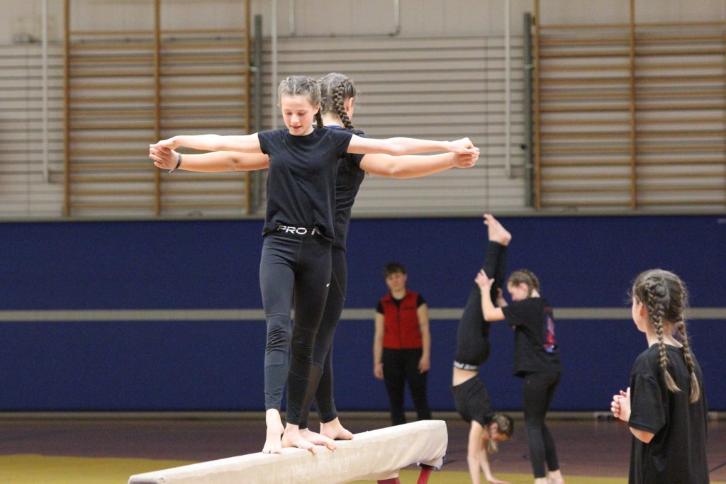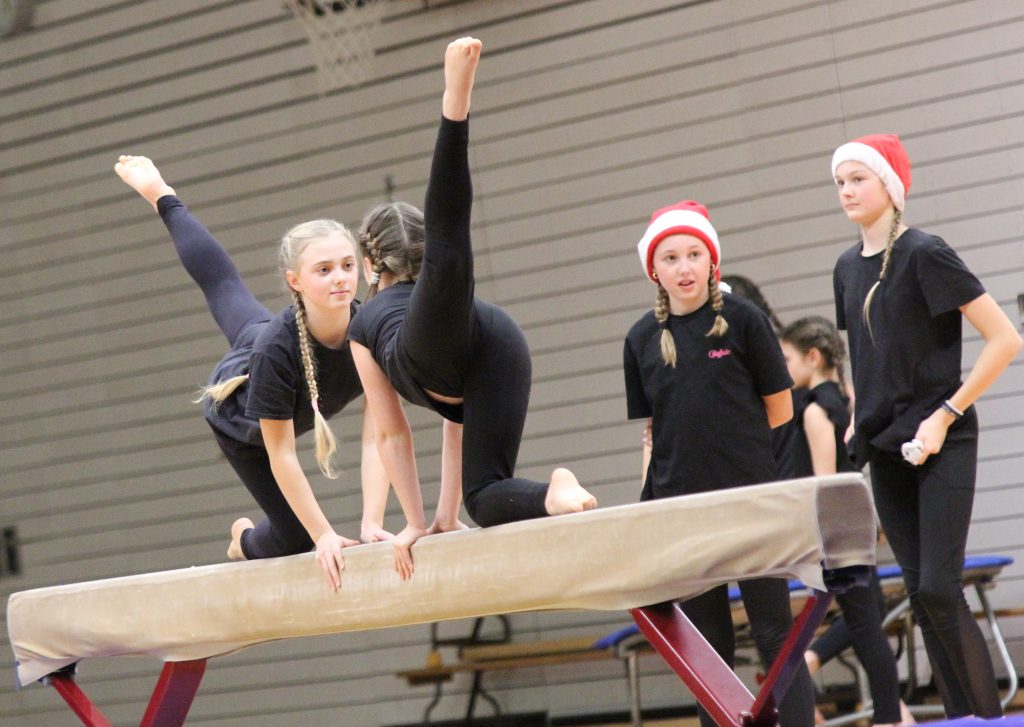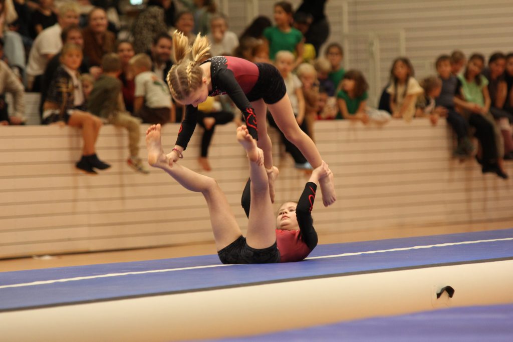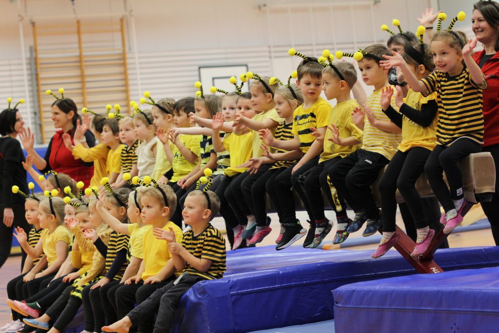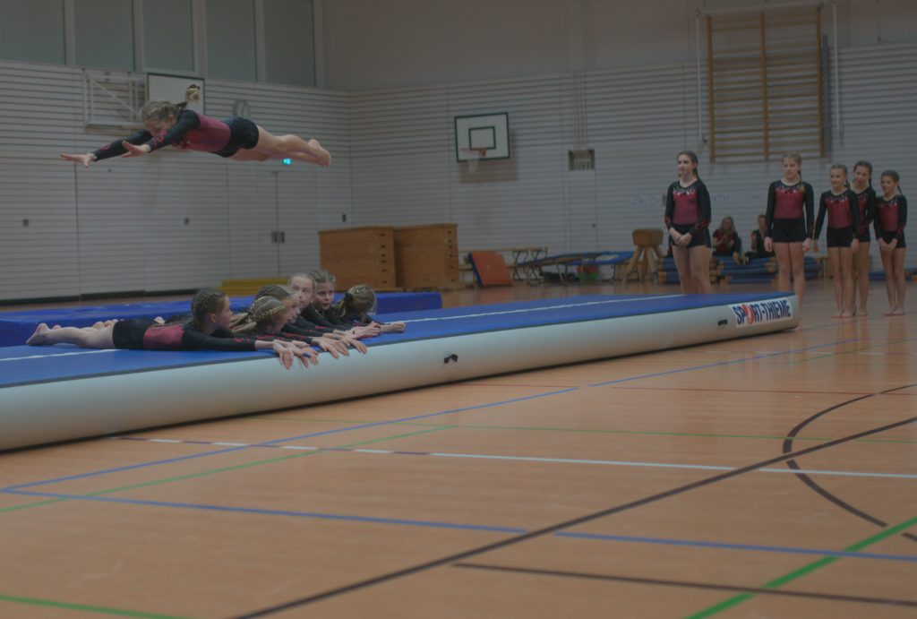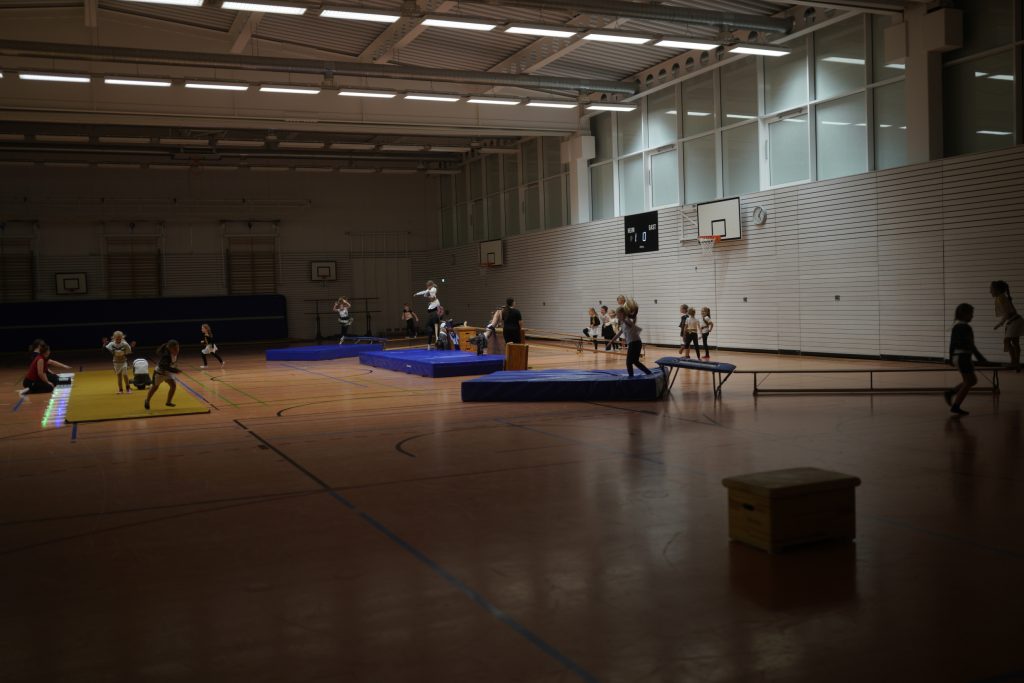 Insgesamt nahmen 280 Kinder im Alter von 2 bis 15 Jahren teil, die in den Wochen zuvor fleißig geübt und bestens vorbereitet für ihre Auftritte waren. Das abwechslungsreiche Programm begann mit unseren kleinen „Schneeflocken“ und „Wichteln“. Unsere Kindergartenkinder schlüpften in die Rollen von Biene Maja und den Schlümpfen und zeigten an verschiedenen Stationen erste turnerische Elemente. Kreativer wurde es bei den Turngruppen der Grundschulkinder, die mit ihren Tanzchoreografien begeistern konnten, und anschließend mit viel Spaß und Energie am Boden, Sprung und Trampolin ihr Können zeigten. Für die festliche Stimmung an diesem Nachmittag sorgten Programmpunkte wie „Winter Harmony“ und „Weihnachtszauber“. Bei unserer Wettkampfgruppe konnten die Zuschauer schwierige Turnelemente am Sprungtisch und auf der Airtrack bestaunen. Mit Flick Flacks und Saltos ging es von der Karibik bis zu den Sternen. Den Abschluss bildete unsere Bubengruppe mit ihrer Vorführung im Dunkeln mit Leuchtstreifen. Mit viel Power konnten sie das Publikum am Ende nochmal mitreißen.